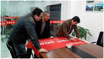 最後榮總和徐總對本次市場麵對麵“質量萬裏行”服務之旅給予了非常高的讚揚,對服務小組成員的努力表示感謝,並親自帶領自己的銷售團隊與大家集體合影留念,並在旗幟上簽字送祝福。